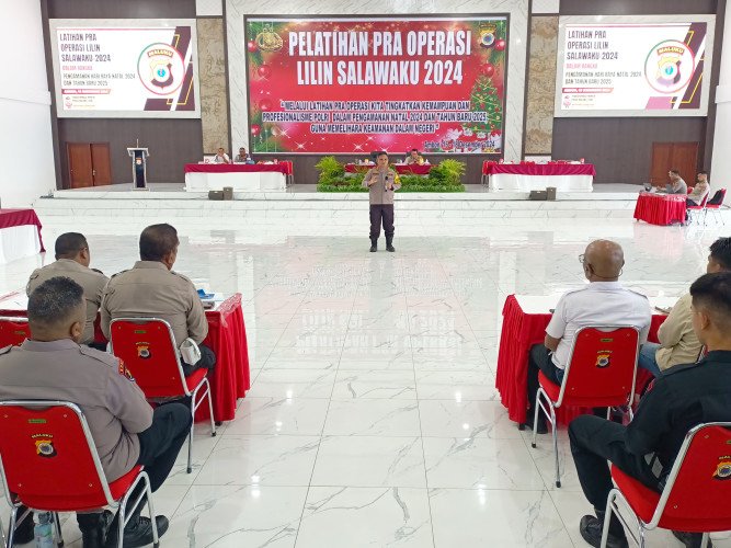 Latihan Pra Operasi Lilin dilaksanakan di gedung Plaza Presisi Manise Polda Maluku di Tantui, Kota Ambon, Rabu, 18 Desember 2024.
