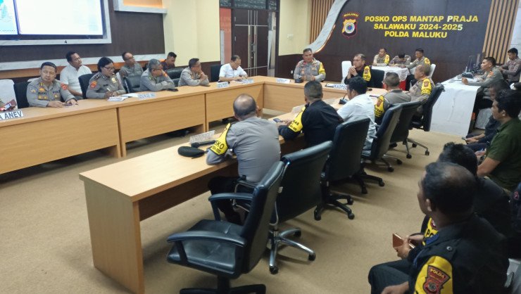Papuanewsonline.com, Ambon - Kepolisian Daerah Maluku melaksanakan rapat analisa dan evaluasi (Anev) pengamanan kampanye pilkada serentak di Posko Operasi Mantap Praja (OMP) Salawaku Tahun 2024, Rabu (25/9/2024).