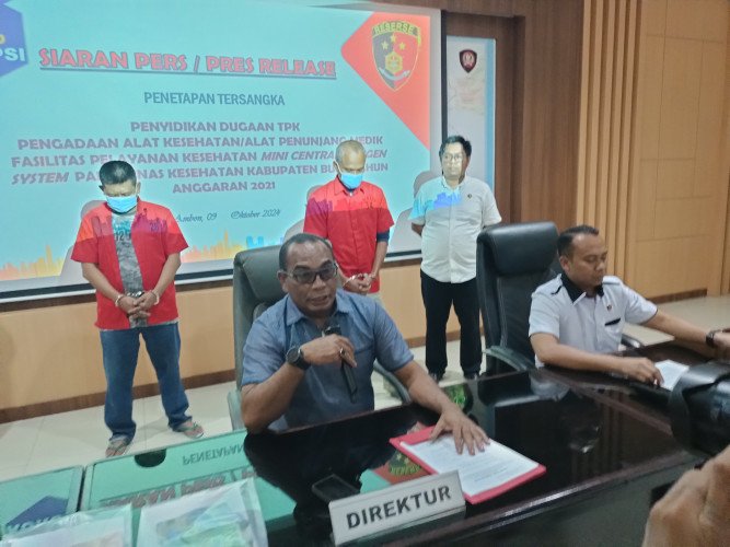 Papuanewsonline.com, Ambon - Kepolisian Daerah Maluku melalui Subdit Tipikor Direktorat Reserse Kriminal Khusus, akhirnya menetapkan dua orang tersangka kasus dugaan korupsi pengadaan alat kesehatan (Alkes) penunjang medik fasilitas pelayanan kesehatan mini central oxygen system pada dinas kesehatan kabupaten Buru Tahun 2021.