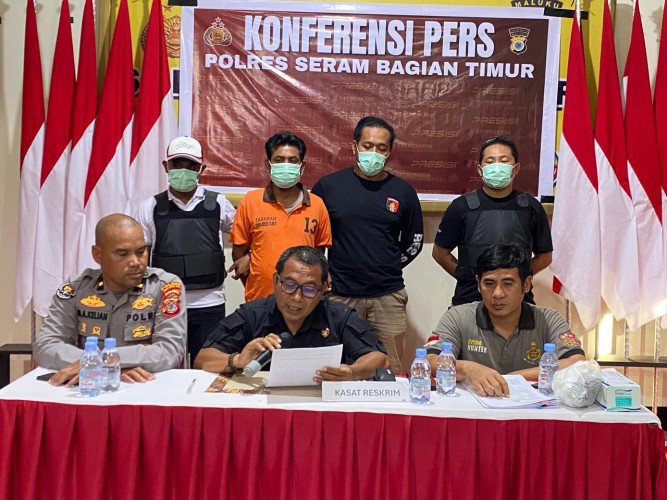 dalam konferensi pers yang digelar di Aula Parama Satwika, lantai 2 Polres SBT,