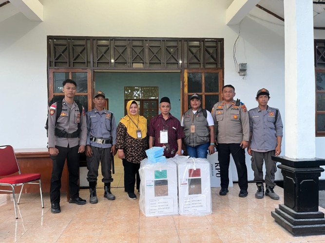Kasi Humas menerangkan, kami melaksanakan tugas kepolisian untuk menjaga Logistik Kotak Suara hasil pemungutan suara Pilkada Tahun 2024 di masing-masing Distrik.