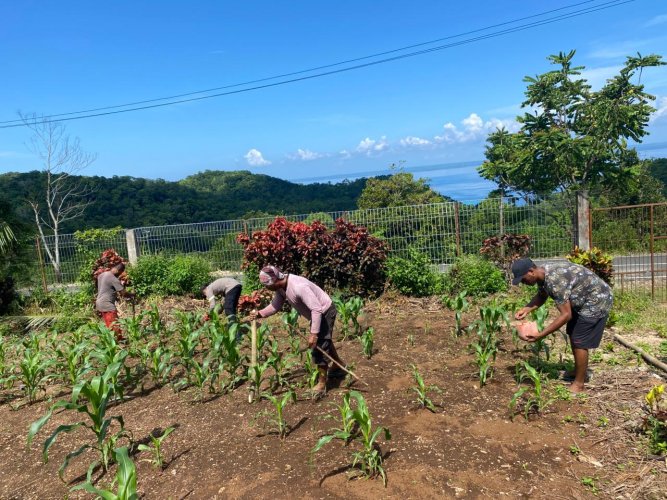 Kegiatan yang berlangsung sejak pukul 09.30 WIT itu dipusatkan di lahan milik Balai Penyuluhan Pertanian (BPP) Tamangil, Kecamatan Kei Besar Selatan, dengan luas garapan mencapai 0,40 hektare.
