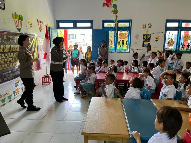 Papuanewsonline.com, Tanimbar - Sebanyak 60 siswa TK Anggrek Saumlaki, Kabupaten Kepulauan Tanimbar, mendapat edukasi pencegahan Tindak Pidana Kekerasan Seksual (TPKS) dan tertib berlalu lintas dari Polisi Wanita (Polwan) Polres Kepulauan Tanimbar, Rabu (8/4/2026). Kegiatan ini menjadi bagian dari upaya Polri memperkuat perlindungan anak sejak usia dini.