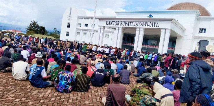 Puluhan kepala kampung dari berbagai distrik di Kabupaten Jayawijaya, Papua Pegunungan, menggeruduk Kantor Bupati Jayawijaya, Rabu (9/7/2025).