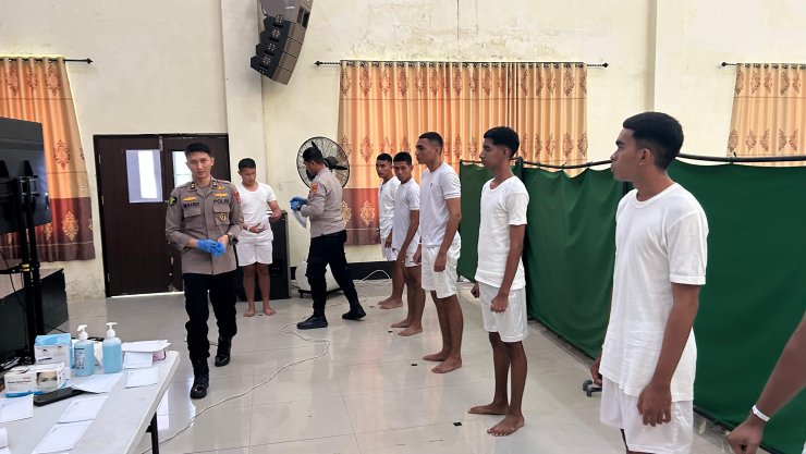 Kegiatan pemeriksaan berlangsung di Gedung Faisal Heluth, SPN Polda Maluku, Rabu (15/4/2026), dengan melibatkan tim medis dari Bidang Kedokteran dan Kesehatan (Bid Dokkes).