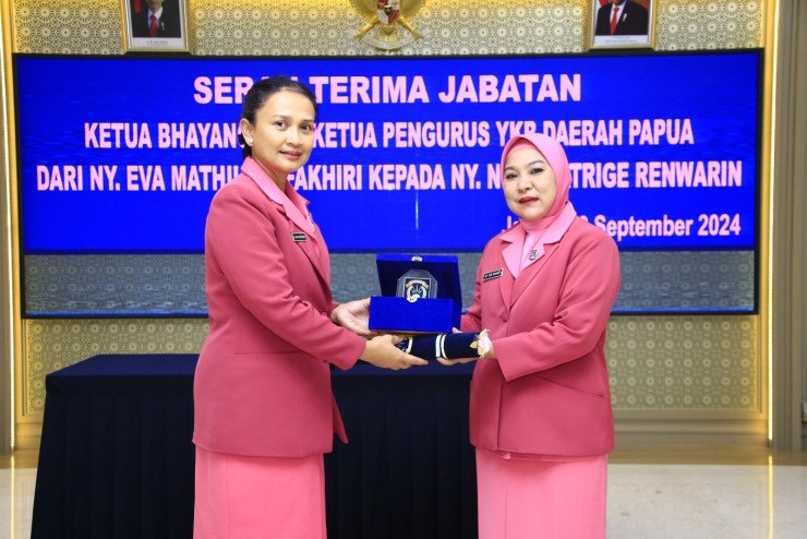 Papuanewsonline.com, Jakarta – Tidak hanya pergantian jabatan Kapolda Papua, pada Selasa (3/9), jabatan Ketua Bhayangkari Daerah Papua sekaligus Ketua Pengurus Yayasan Kemala Bhayangkari (YKB) Daerah Papua juga diserahterimakan dalam sebuah upacara yang berlangsung di ruang Astagina, Gedung Bhayangkari.