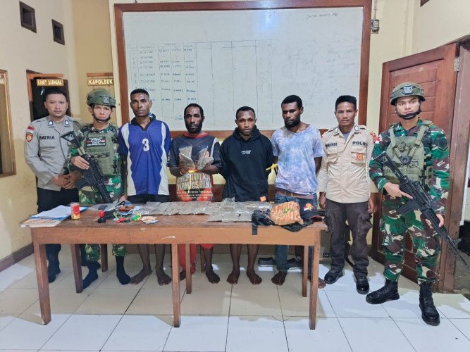 "Kami mendapat informasi oleh Danki Satgas Pamtas RI-PNG Lettu inf Recky wahyudi bahwa pihaknya saat melaksanakan Razia telah mencurigai dan mengamankan empat terduga pelaku beserta barang bukti narkotika jenis ganja," ujar Kapolsek.