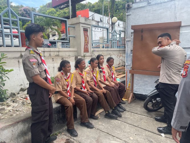Papuanewsonline.com, Jayapura – Dalam rangka Operasi Rasaka Cartenz-2025, Sekira pukul 13.00 WIT Polresta Jayapura Kota melalui Subsatgas Keladi Sagu berikan edukasi ke Anak-anak Saka Bhayangkara binaan Polresta di Pos Ketupat tepatnya di Depan Mall Jayapura, Senin (07/04) Siang.