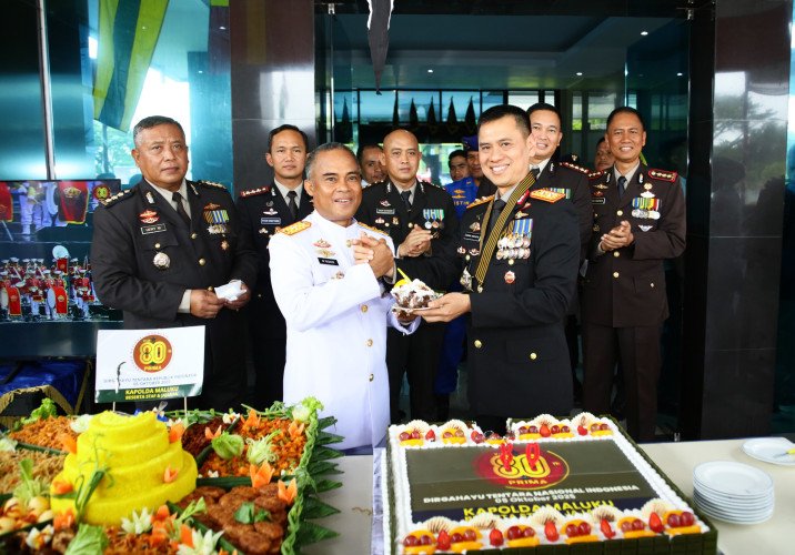 Pada kesempatan tersebut, Kapolda Maluku turut memberikan hadiah berupa tumpeng dan kue ulang tahun kepada para pejabat dari tiga matra TNI, yaitu TNI AD, TNI AL, dan TNI AU. Kapolda hadir didampingi pejabat utama Polda Maluku serta perwakilan personel dari berbagai satuan fungsi.