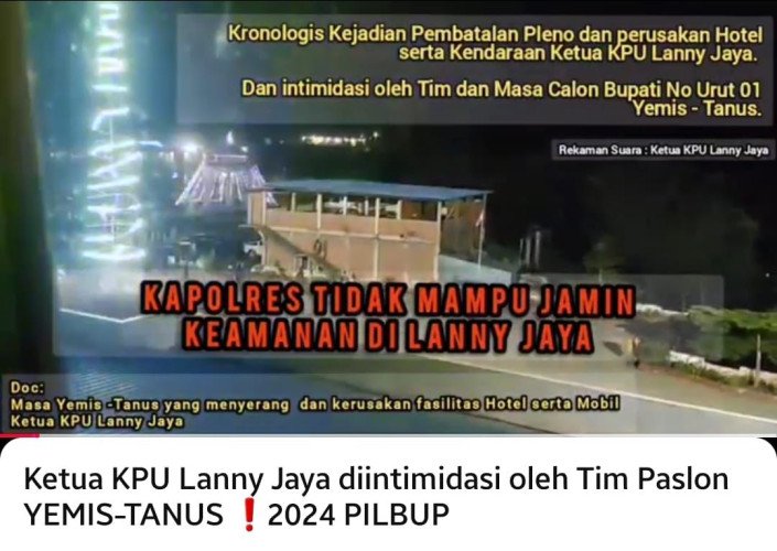 Papuanewsonline.com, Lanny Jaya – Beredar rekaman Video Audio Ketua KPU Lanny Jaya yang diunggah di akun media sosial Facebook Kaonak Nen Jr yang berdurasi 2.45 menit yang menyebut Aparat keamanan tidak mampu menjamin keamanan di Lanny Jaya.