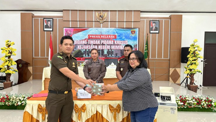 " Benar pada hari ini Kamis tanggal 12 Juni 2025 Kejaksaan Negeri Mimika melalui Seksi Tindak Pidana Khusus telah menerima penyerahan uang sebesar Rp.685.123.938,00 (enam ratus delapan puluh lima juta tiga ratus dua puluh tiga ribu sembilan ratus tiga puluh delapan rupiah) dari tersangka MP, yang merupakan penyedia jasa (CV. KA) pada perkara Dugaan Tindak Pidana Korupsi pada Kegiatan Pembangunan Jembatan dan Bangunan Pelengkap (8m) di Distrik Agimuga pada Dinas Pekerjaan Umum dan Penataan Ruang Kabupaten Mimika Tahun Anggaran 2023," ujar Kepala Kejaksaan Negeri Mimika, Conny Novita Sahetapy Engel di kantor Kejaksaan Negeri Timika, Kamis (12/6/2025).