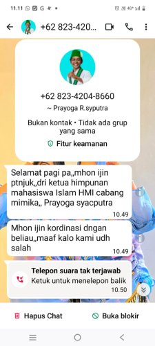 Penipuan melalui pesan WhatsApp mengatasnamakan Ketua HMI Mimika