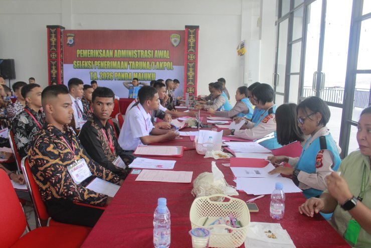 Panitia Daerah Penerimaan Anggota Polri TA. 2026 Polda Maluku melaksanakan tahapan pemeriksaan administrasi (Rikmin) awal bagi calon Taruna/Taruni Akademi Kepolisian (Akpol) Tahun Anggaran 2026 di Gedung Plaza Presisi, Tantui, Ambon, Rabu (1/4/2026).